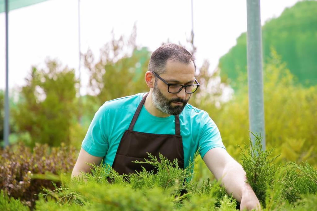 Teile den Raum in Aufenthalts-, Pflanz- und Funktionszonen, statt jeden Zentimeter zu verplanen. So entsteht Ordnung im Kopf, Wege bleiben frei, und dein kleines Paradies fühlt sich sofort größer und ruhiger an.